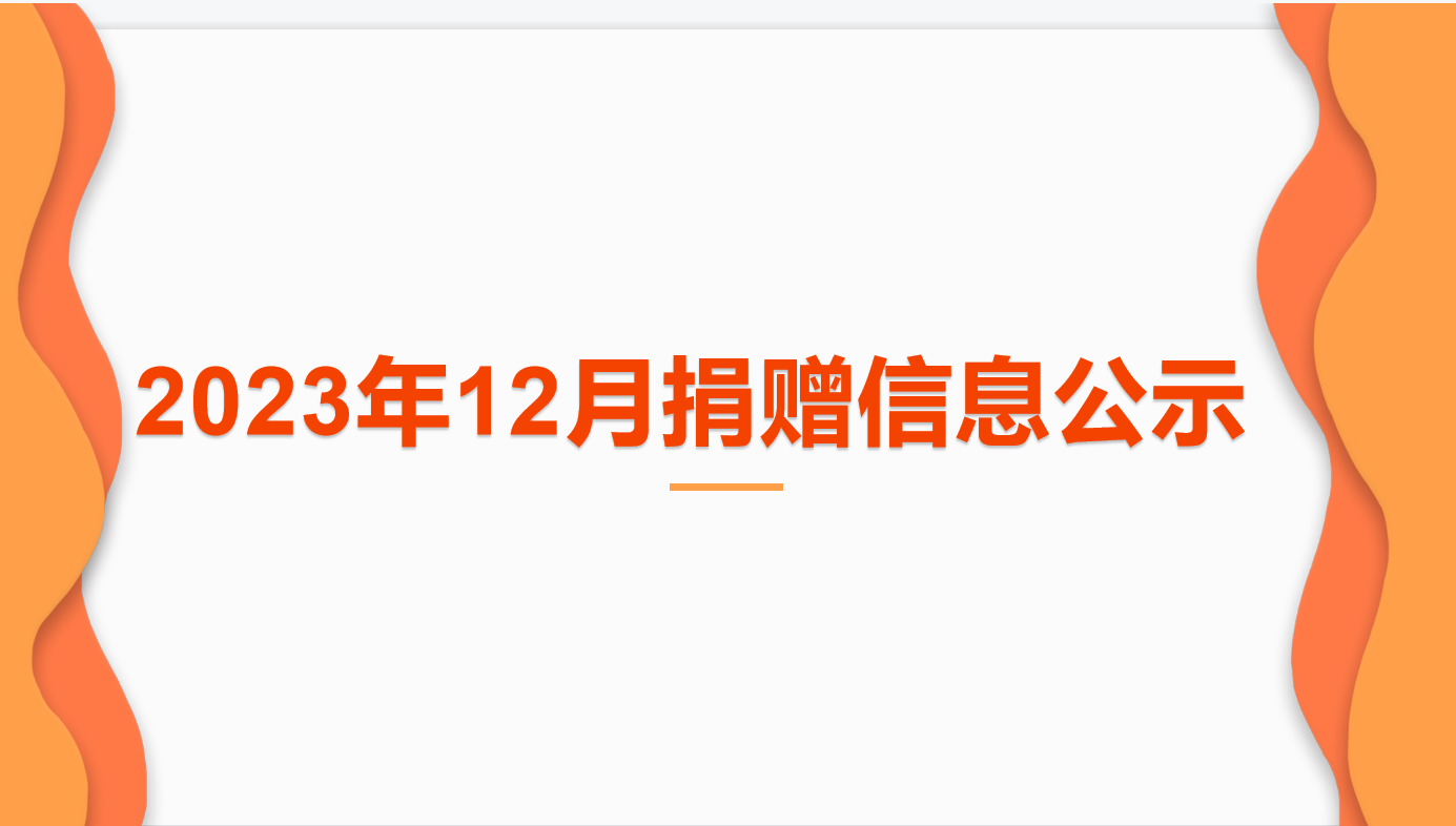 广州市利世慈善基金会向伸出友爱之手、奉献无限爱意的爱心人士致以崇高的敬意和衷心的感谢!以下为2023年12月捐赠名单,收到境内自然人和法人定向捐赠款共计448654.24元,其中,境内法人...
