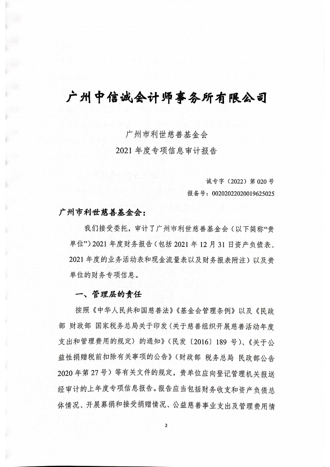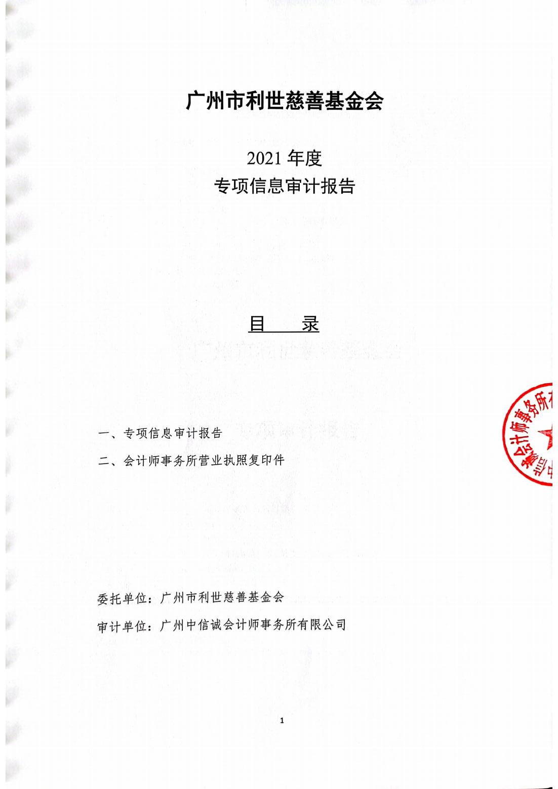 广州市利世慈善基金会2021年度专项审计报告