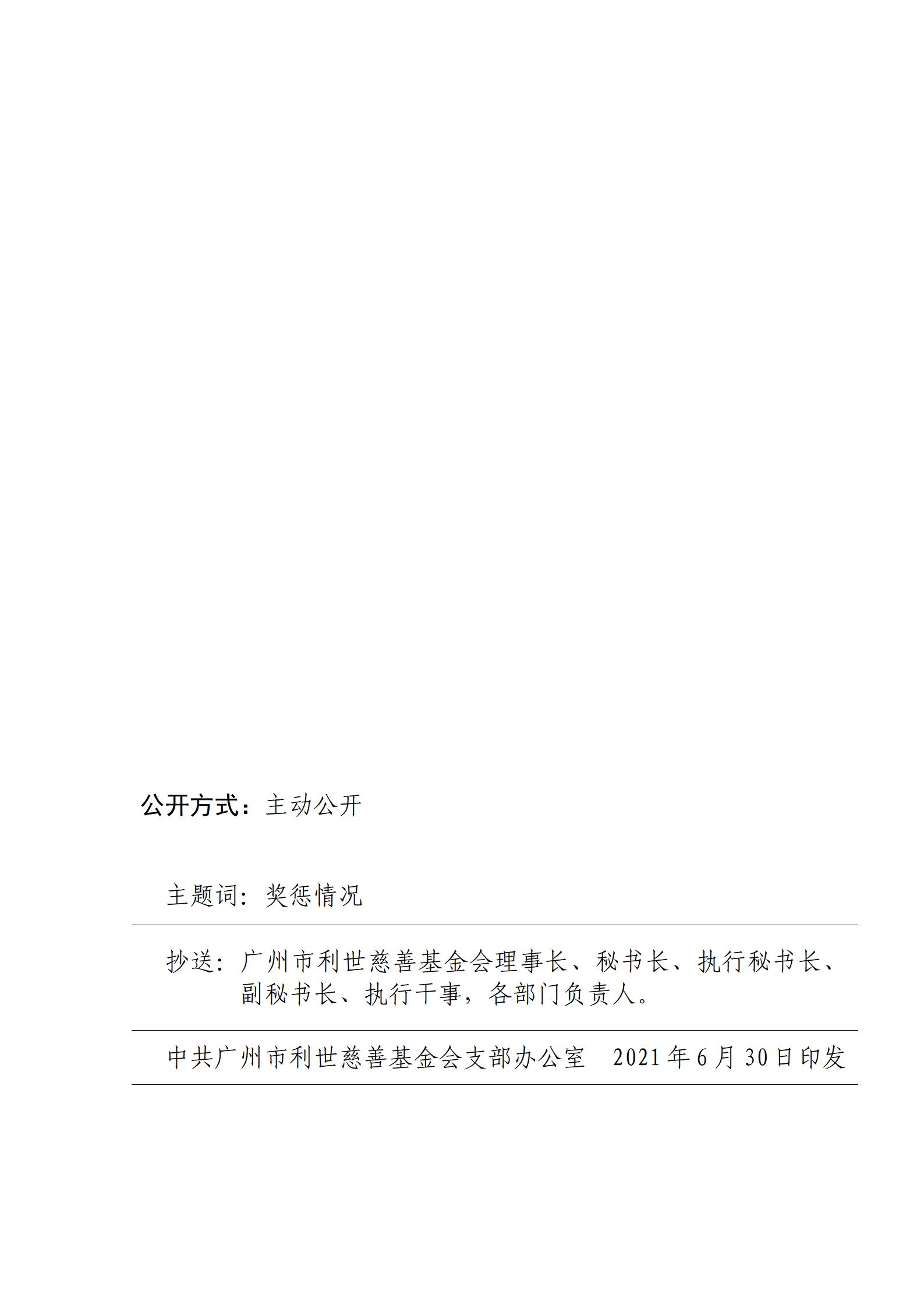 2021年6月30日,中共广州市利世慈善基金会支部书记肖思琳同志获得2021年广州社会组织“优秀共产党员”称号。