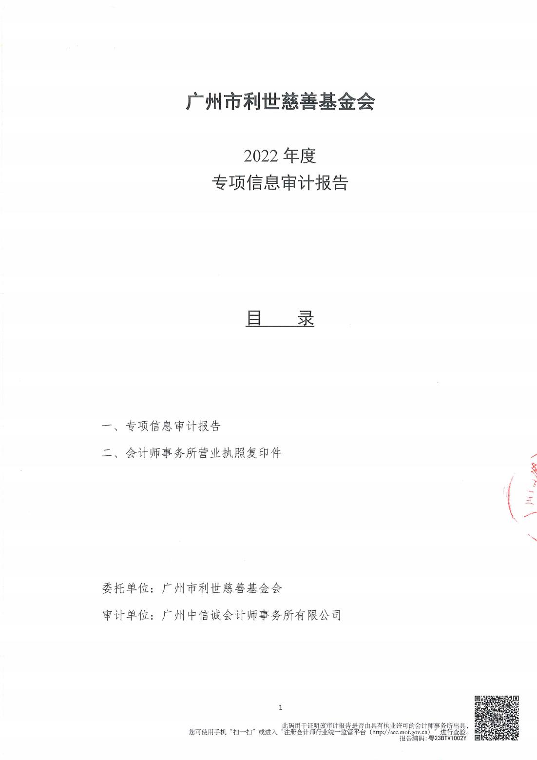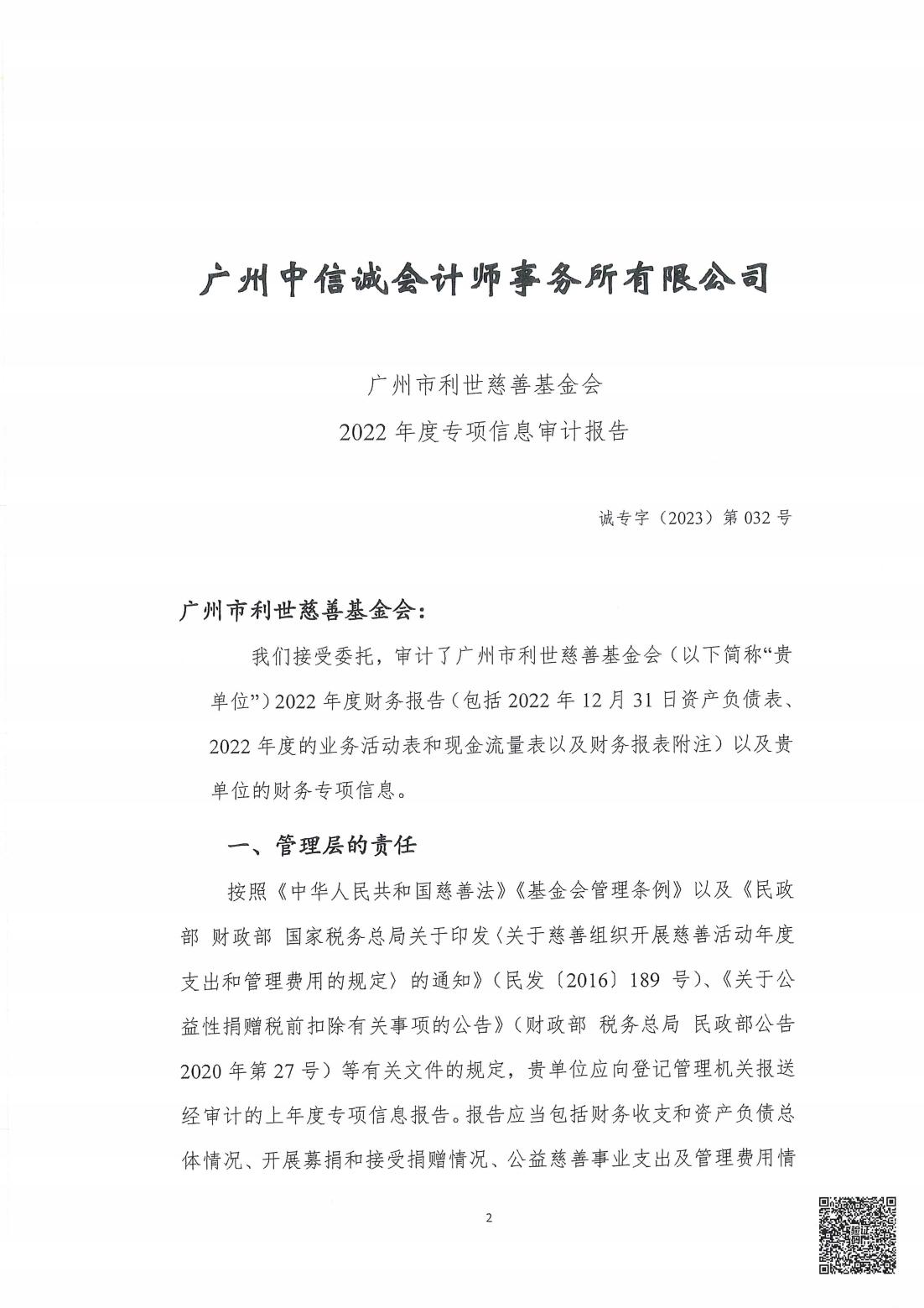 广州市利世慈善基金会2022年度专项审计报告