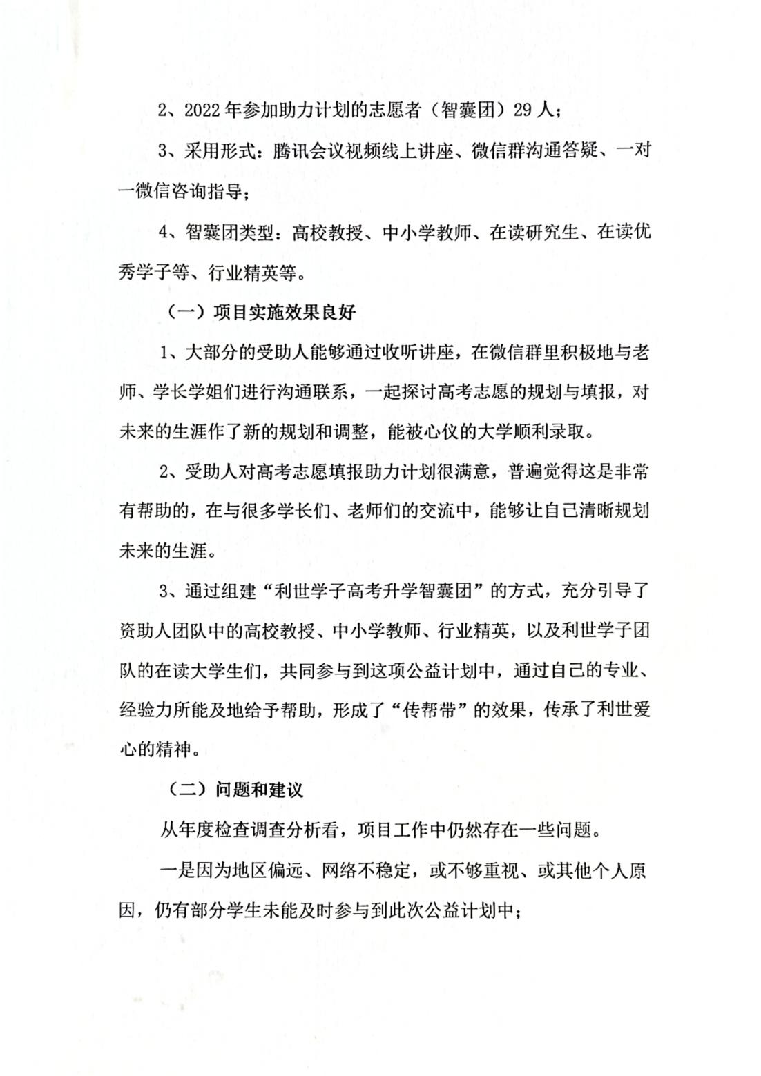 利世精英学子高考志愿填报助力计划2022年度项目检查反馈报告