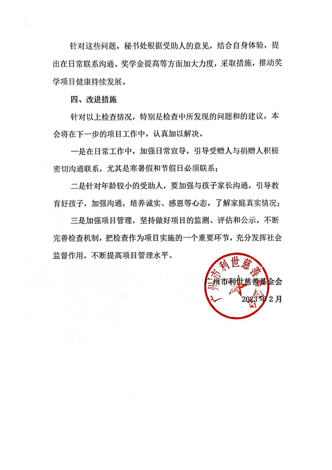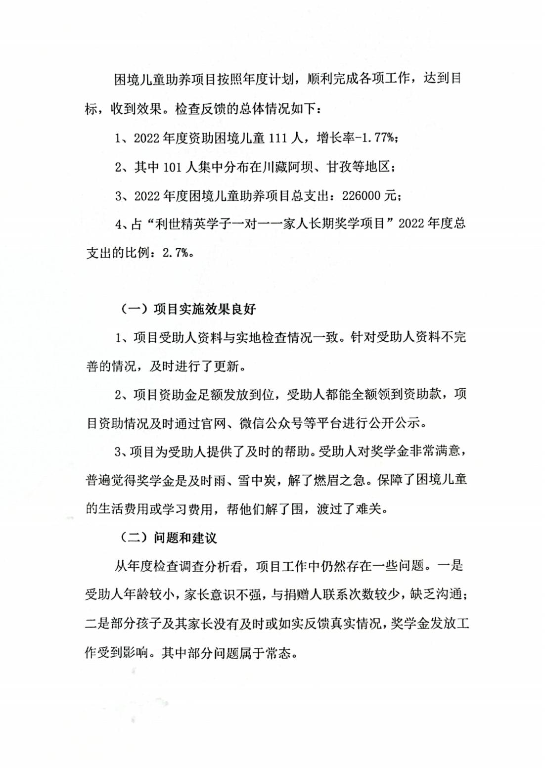 利世困境儿童助养项目2022年度项目检查反馈报告
