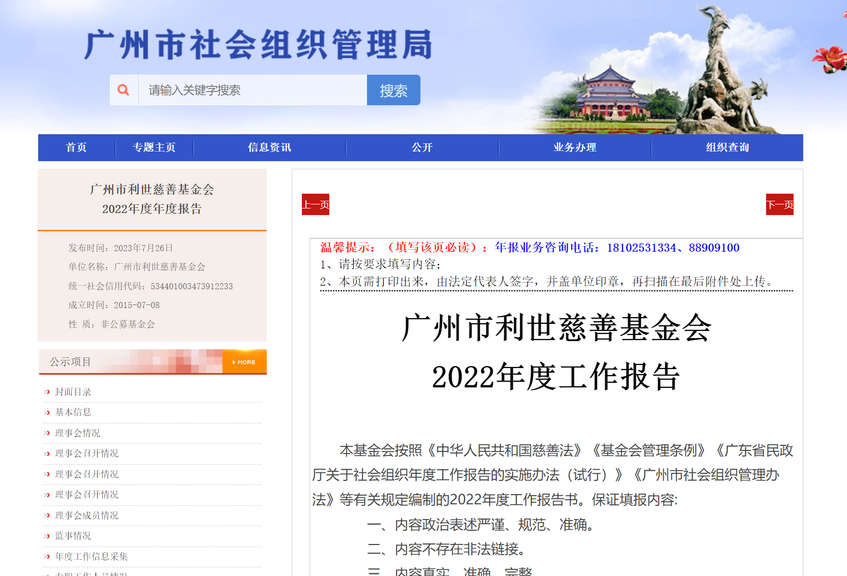 广州市社会组织信息公示平台:http://112.94.64.225:8080/pub/GSContent/gdgz2303271630008